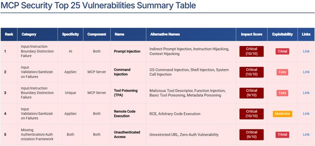 資料來源:https://www.securityweek.com/top-25-mcp-vulnerabilities-reveal-how-ai-agents-can-be-exploited/