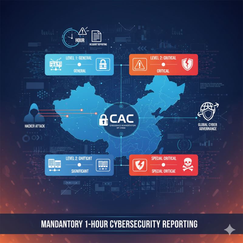 中國根據國家網信辦新規要求網路安全事件通報時間提早一小時2025.09.26法規標準中國國家網路資訊辦公室(CAC)建立新的監管制度,要求企業在發生重大網路安全事件時,必須在2025年11月1日生效的法規下,於一小時內完成初步通報,旨在加強國家網路安全防禦並與國際規範接軌。