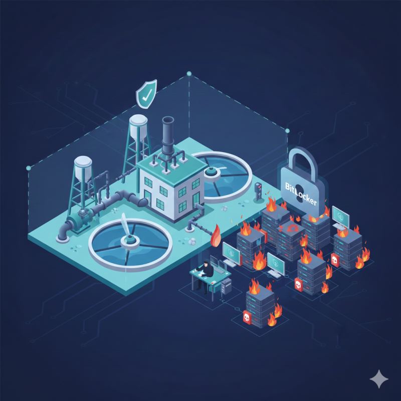 羅馬尼亞水務局週末遭遇勒索軟體攻擊2025.12.23工控安全分析 2024 年底羅馬尼亞水務局(Apele Române)遭受的重大勒索軟體攻擊事件。探討攻擊者如何利用 Windows 內建 BitLocker 功能實施加密、對國家級水務系統的衝擊規模,以及針對關鍵基礎設施(CII)的安全防禦建議。