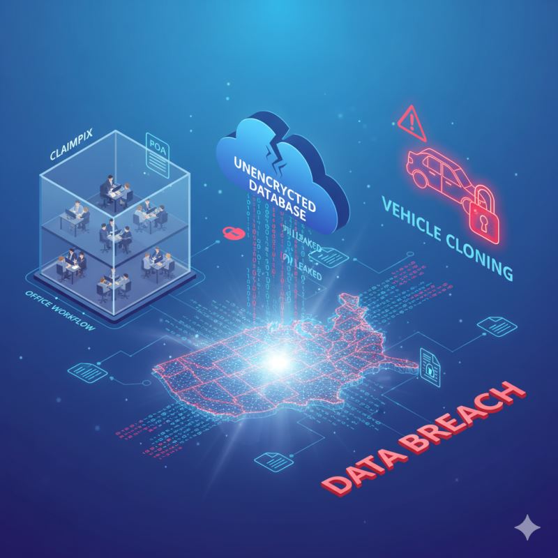 美國汽車保險平台 ClaimPix 洩漏 10.7TB 數據2025.10.01資料外洩美國汽車保險理賠管理平台 ClaimPix 發生嚴重資料外洩,資安研究員發現一個容量高達 10.7 TB、包含 510 萬個文件的資料庫完全未加密且無密碼保護。
