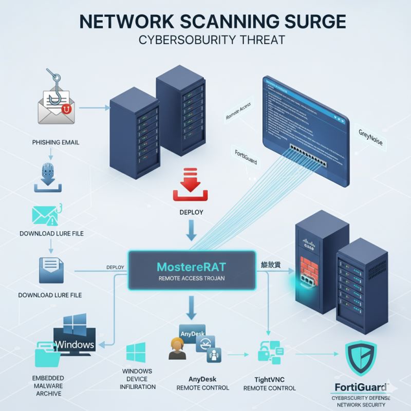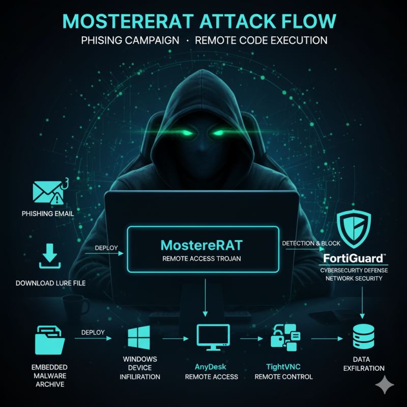 MostereRAT 以 Windows 為目標,利用 AnyDesk 和 TightVNC 實現完全訪問2025.09.09資訊安全FortiGuard實驗室揭露新型惡意軟體MostereRAT,透過針對日本用戶的網路釣魚活動散播,利用AnyDesk與TightVNC等遠端存取工具竊取資料並控制系統。