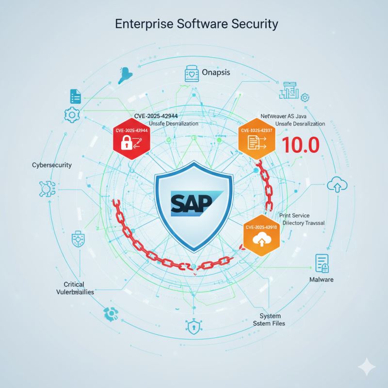 SAP 修補 NetWeaver、列印服務、SRM 中的嚴重漏洞2025.10.15資安漏洞商業軟體巨頭 SAP 於 2025 年 10 月安全修補程式日發布關鍵更新,解決了包括 NetWeaver AS Java 中評分高達 10.0 的不安全反序列化漏洞(CVE-2025-42944)、列印服務中的目錄遍歷錯誤(CVE-2025-42937)以及 SRM 中的不受限制文件上傳缺陷(CVE-2025-42910)等三個嚴重漏洞。