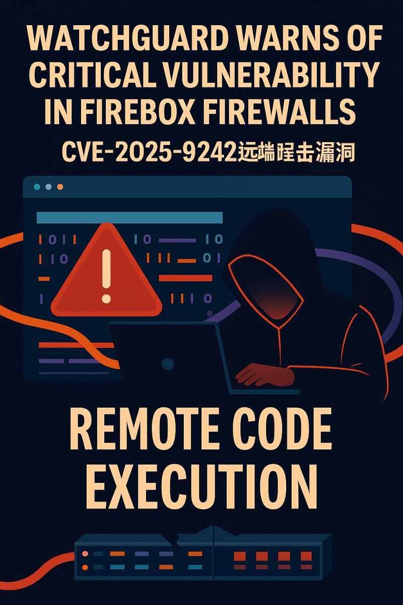 WatchGuard Firebox 防火牆近日曝露 CVE-2025-9242 重大安全漏洞,涉及 Fireware OS 的 IKEv2 VPN 功能,攻擊者可能利用此弱點進行遠端程式碼執行。受影響版本涵蓋 11.x、12.x 與 2025.1。WatchGuard 已釋出更新版本與臨時緩解措施。台灣應用軟件提醒使用者與企業應立即檢查防火牆設定,並儘速完成修補,以降低資安風險。