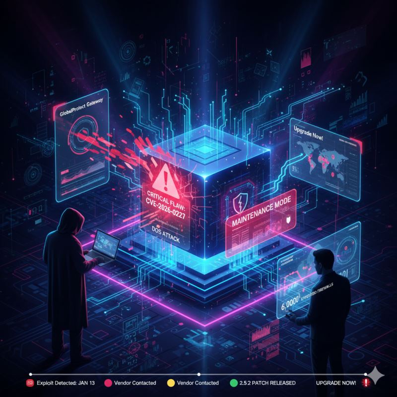 剖析 Palo Alto Networks PAN-OS 防火牆之嚴重拒絕服務(DoS)漏洞 CVE-2026-0227,探討攻擊者如何利用 GlobalProtect 介面使系統崩潰並進入維護模式,並針對企業環境提供修補建議與資安強化路徑。