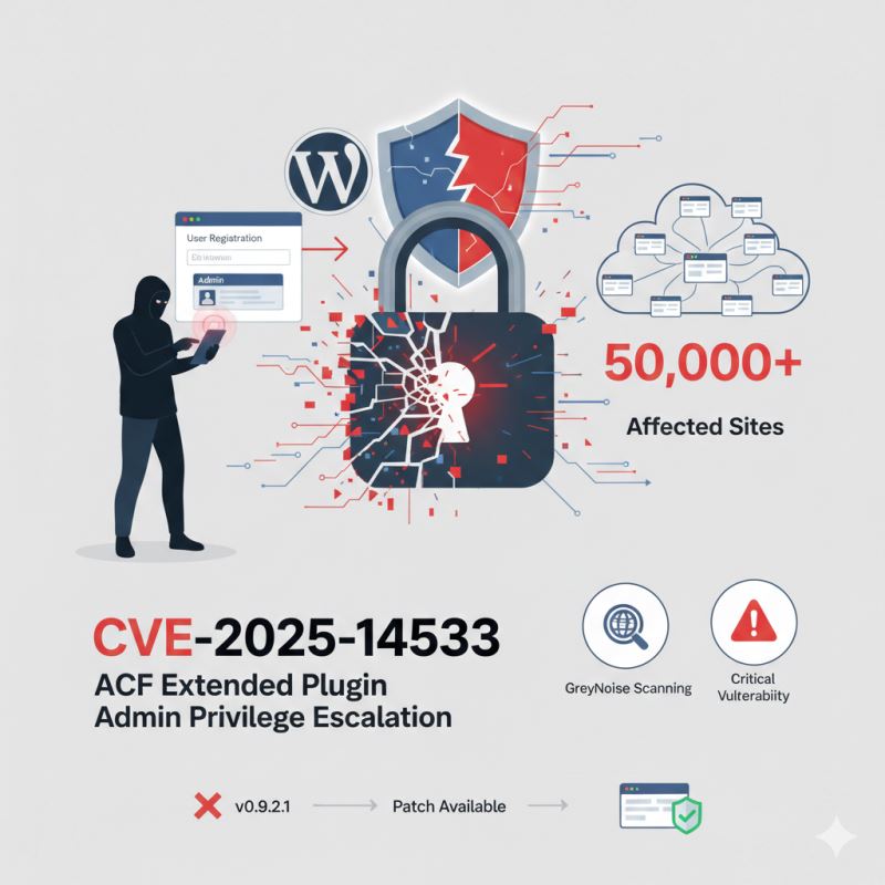 針對 WordPress 熱門外掛 ACF Extended 的嚴重漏洞 CVE-2025-14533 進行分析,該漏洞允許未經身分驗證的攻擊者透過特定表單操作遠端取得管理員權限。